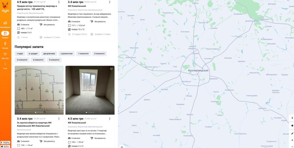 Проте ринкова вартість подібного житла в Кропивницькому значно вища. За актуальними оголошеннями на сайтах нерухомості, трикімнатні квартири 100–140 м² у новобудовах та відносно нових ЖК коштують у середньому 3,4–4,9 млн грн. Навіть без ремонту ціни стартують від 28–35 тис. грн за м² — тобто квартира 143 м² мала б коштувати понад 4 млн грн, а не 60 тис.