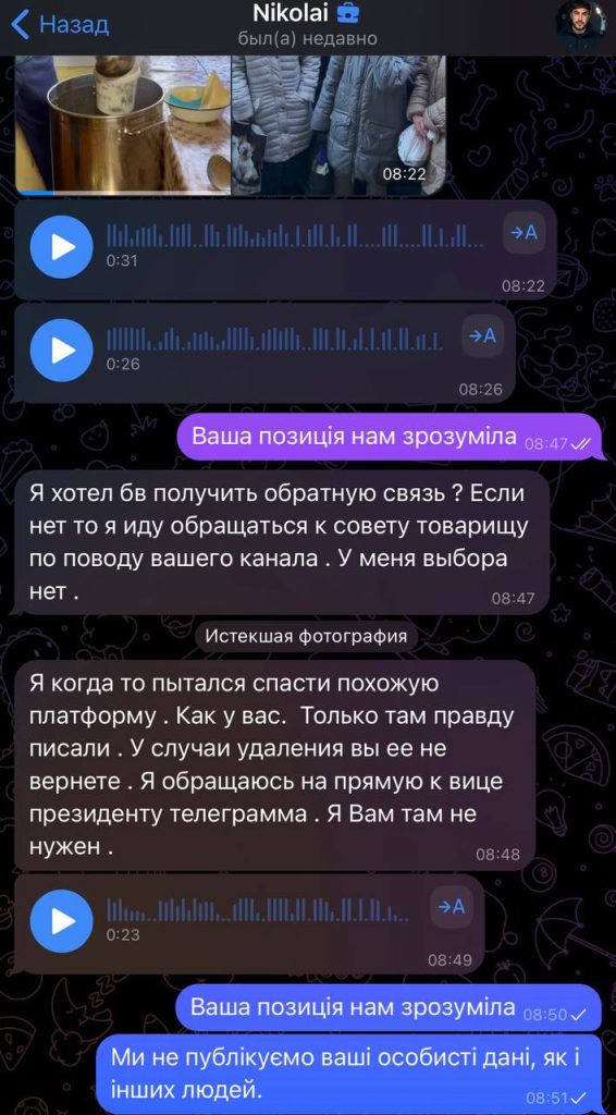 Коли видалити матеріал не вдалося, Удянський перейшов до «жартів»: попросив поставити «більш симпатичне фото» і «подякував за піар», а потім просто видалив листування. Але зміст погроз залишився.